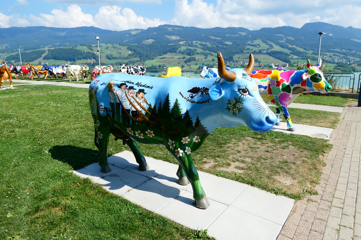 (279'191) - Deko Kuh beim Motel de la Gruyère am 17. August 2025 in Avry-devant-Pont
