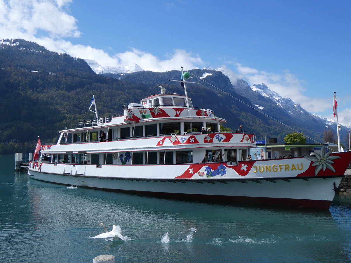 (261'694) - Motorschiff Jungfrau am 25. April 2024 an der Schiffländte Brienz