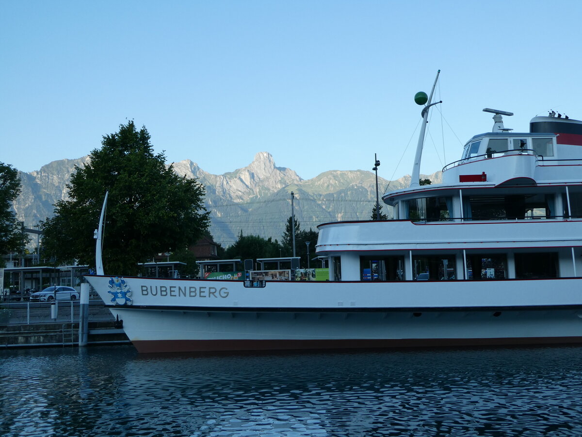 (238'640) - Stockhorn mit Motorschiff Bubenberg am 31. Juli 2022 an der Schiffländte Thun (Teilaufnahme)
