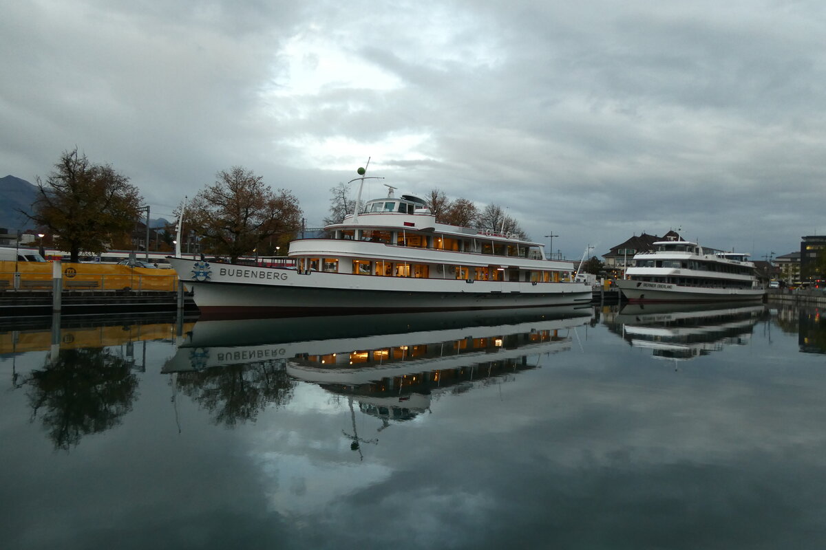 (281'692) - Motorschiffe Bubenberg und Berner Oberland am 21. Oktober 2025 an der Schiffländte Thun