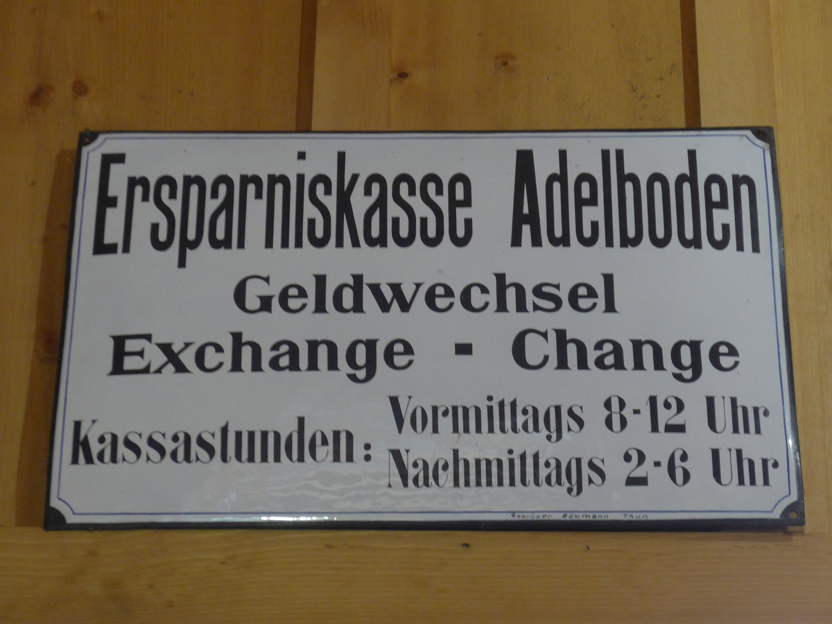 (214'539) - Email-Schild der Ersparniskasse Adelboden am 19. Februar 2020 im Heimatmuseum Adelboden