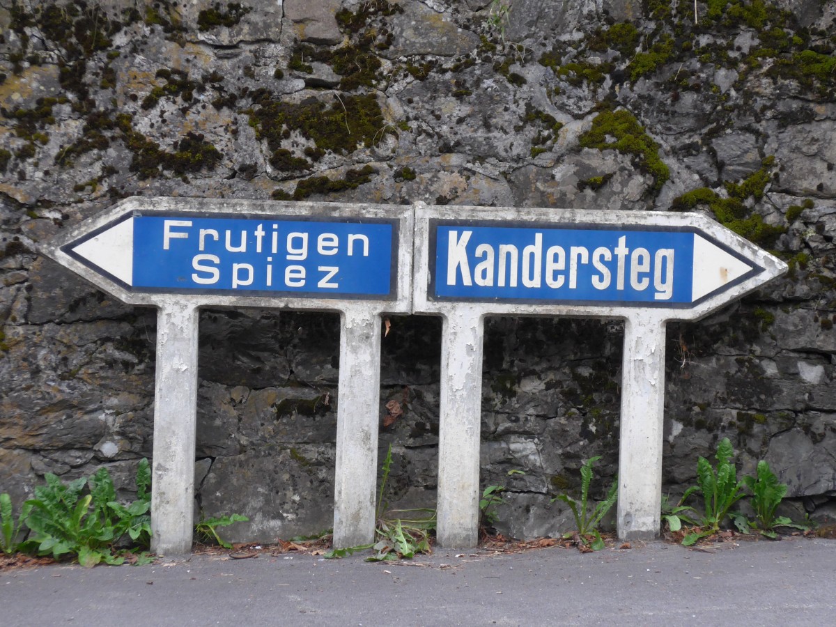 (163'632) - Alter Strassenwegweiser aus Beton am 17. August 2015 beim Blausee