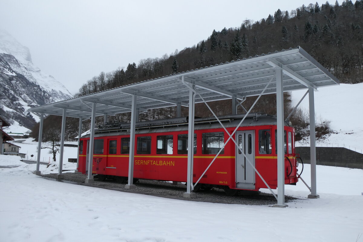 (284'459)  Sernftalbahn-Triebwagen - Nr. 5 - am 30. Januar 2026 in Elm, Station