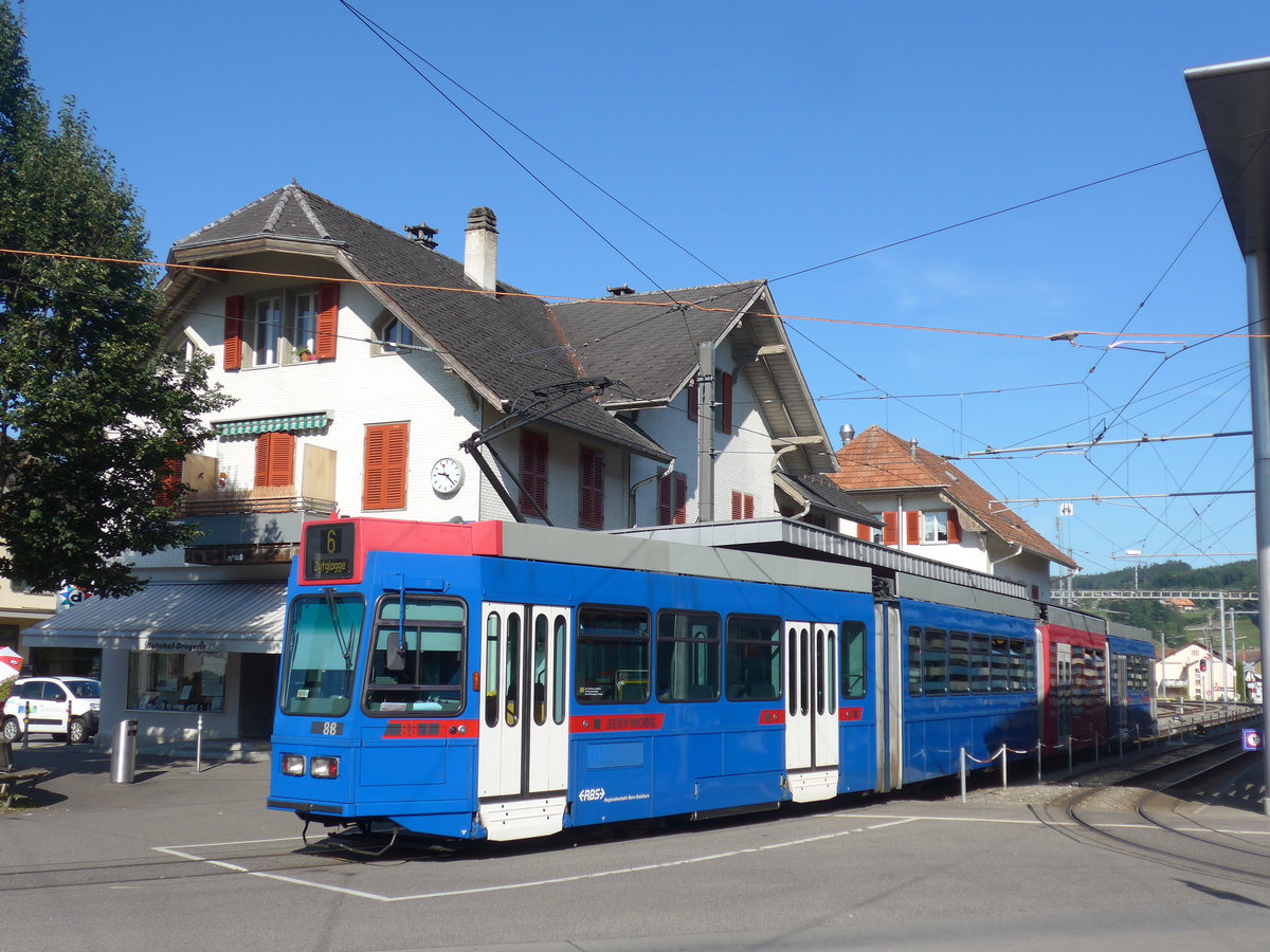 (208'402) - Bernmobil-Tram - Nr. 88 - am 4. August 2019 beim Bahnhof Worb Dorf