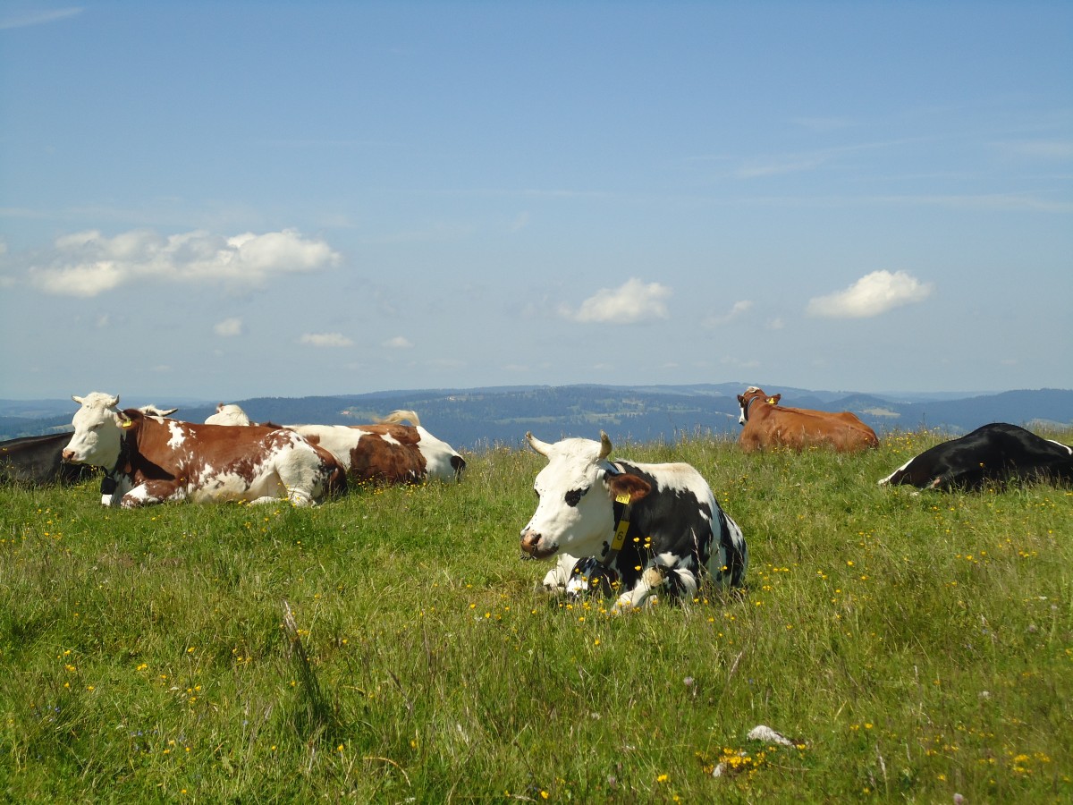 (139'874) - Kühe auf der Weide beim Creux du Van am 17. Juni 2012