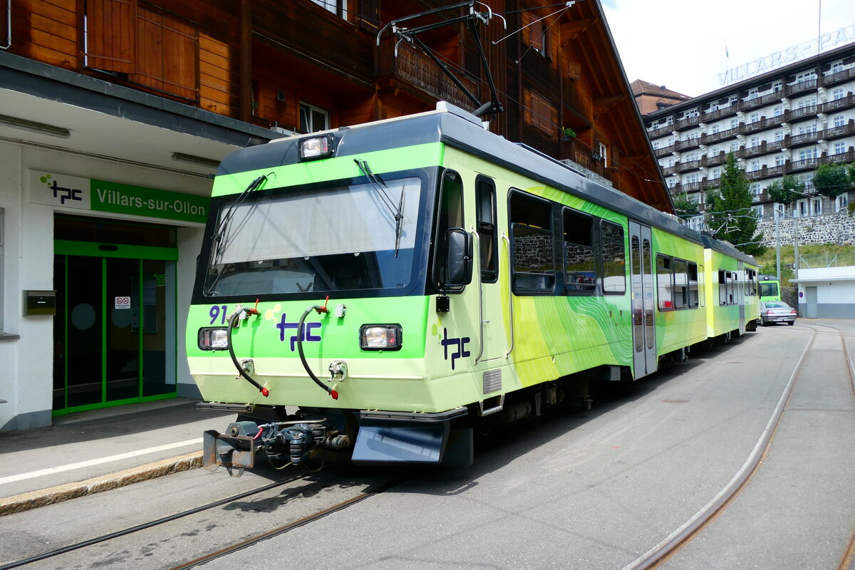 (279'175) - TPC-Pendelzug - Nr. 92 - am 17. August 2025 im Bahnhof Villars-sur-Ollon
