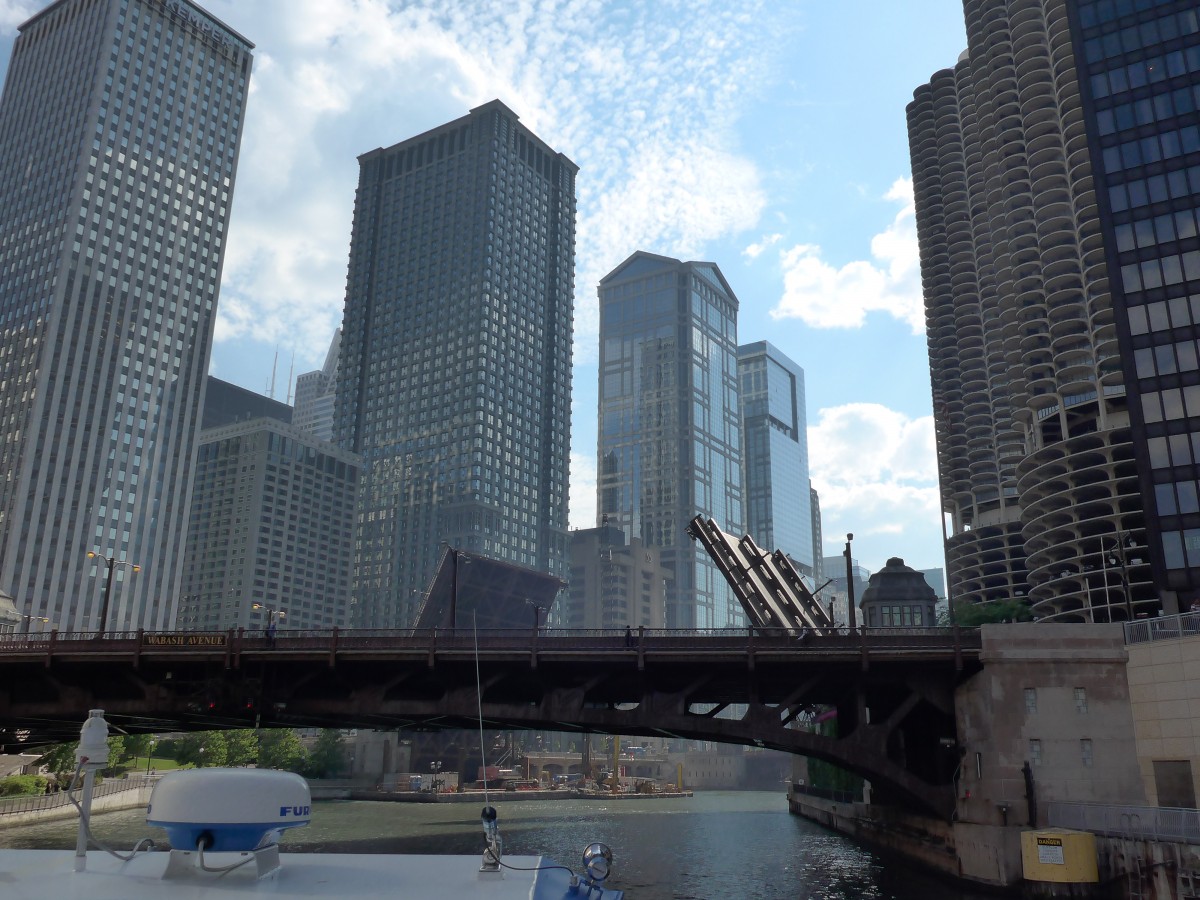 (152'771) - Auf dem Chicago River am 14. Juli 2014 geht es unter einer Brücke hindurch