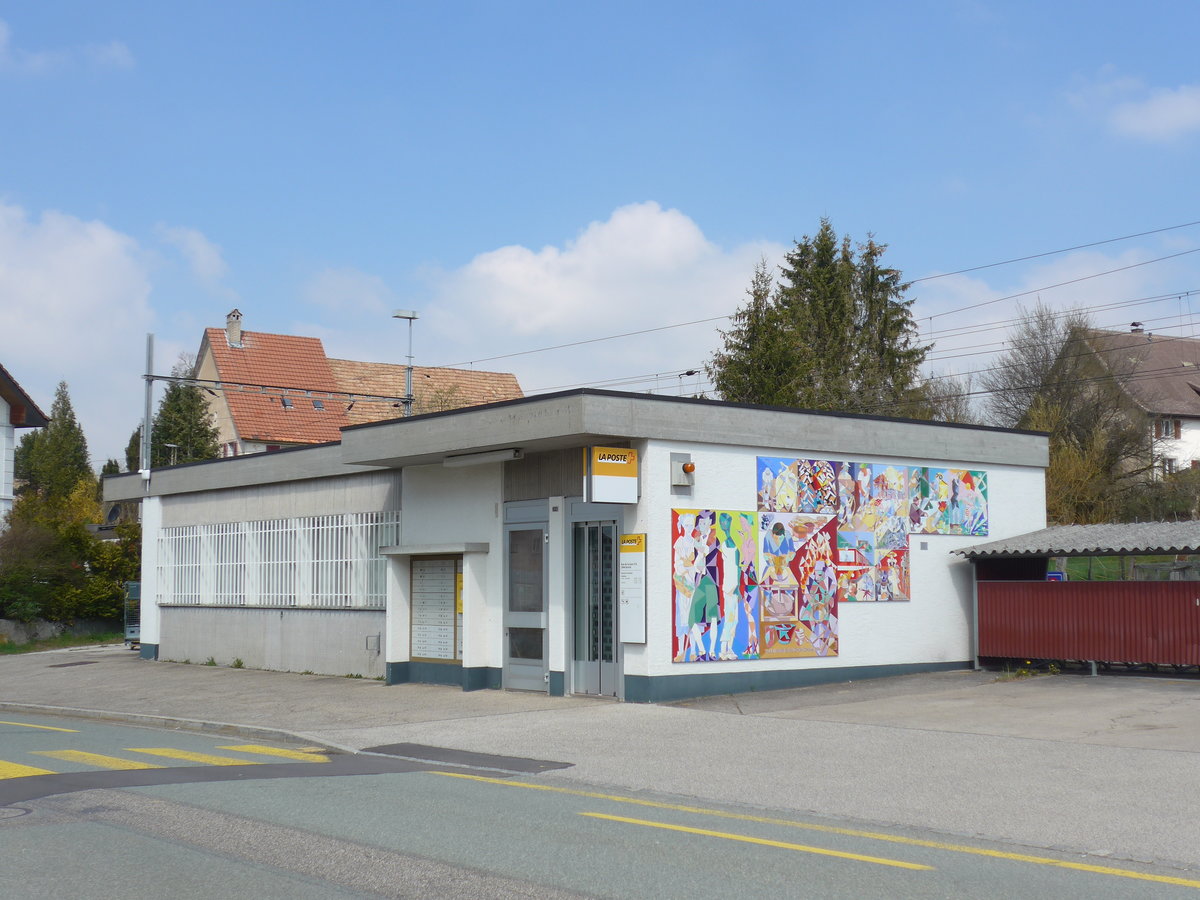 (203'741) - Hydrant - Nr. 35 - umgeben von Löwenzahn am 15. April 2019 beim Bahnhof Bonfol