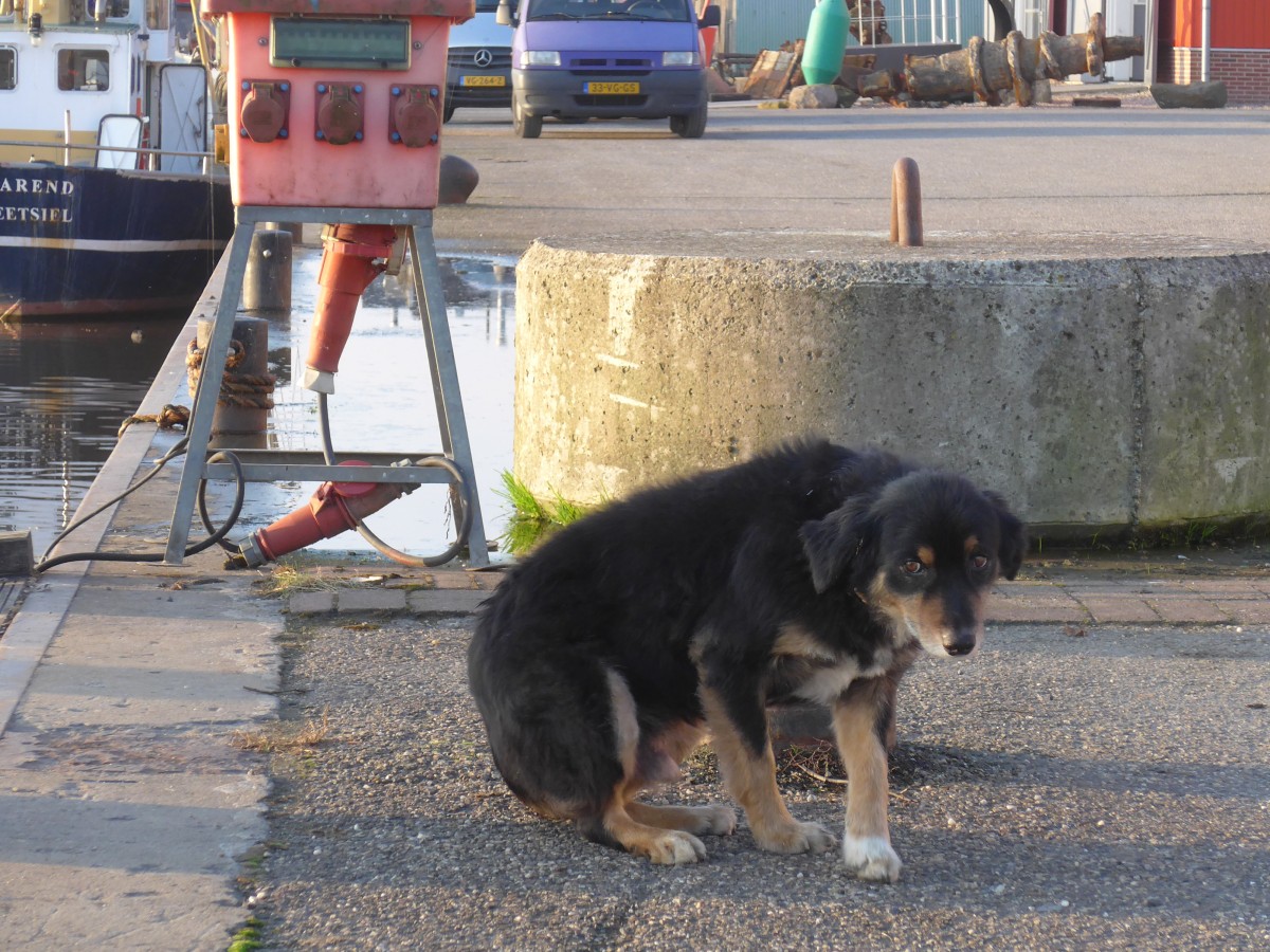 (156'886) - Gwundriger Hund im Hafen von Zoutkamp am 19. November 2014
