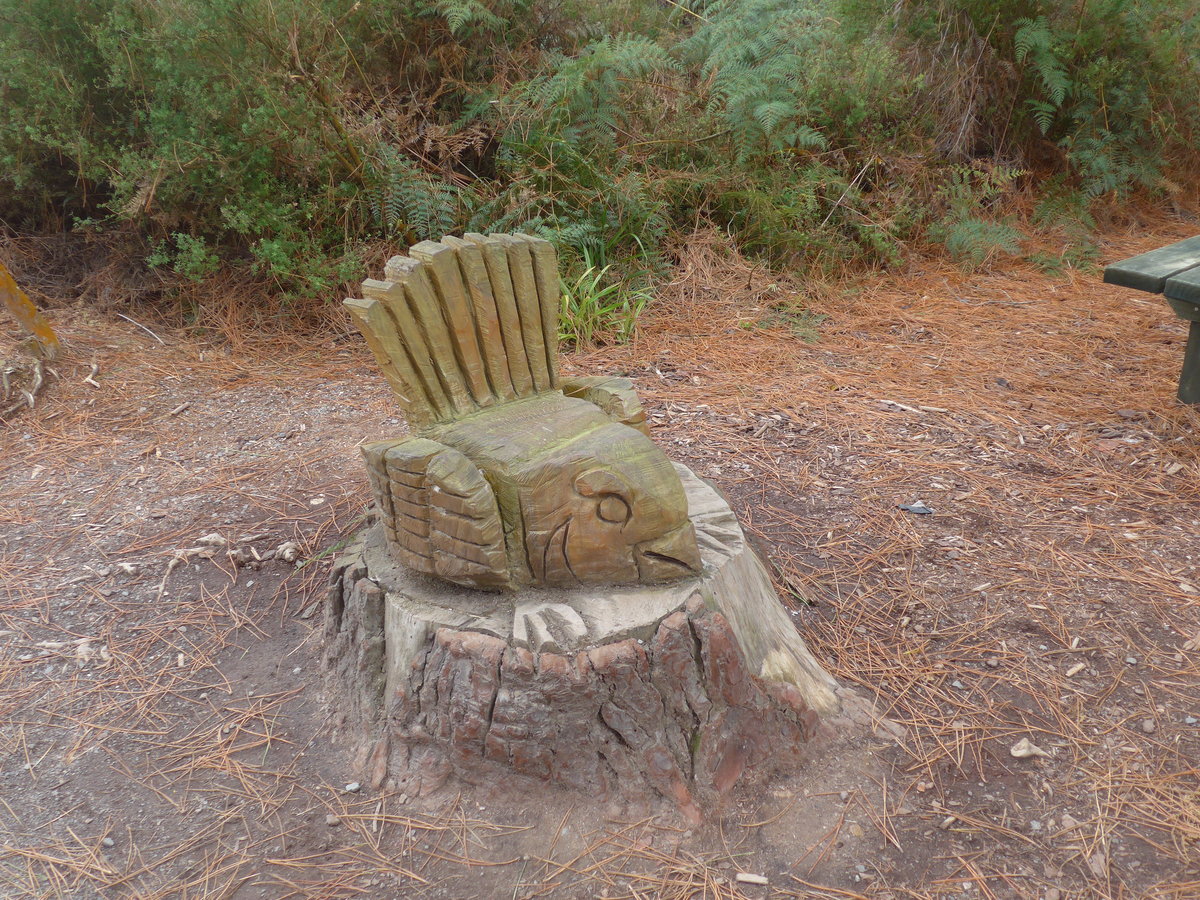 (191'085) - Maori-Schnitzerei im Wai-O-Tapu Thermal Wonderland am 23. April 2018 bei Rotorua