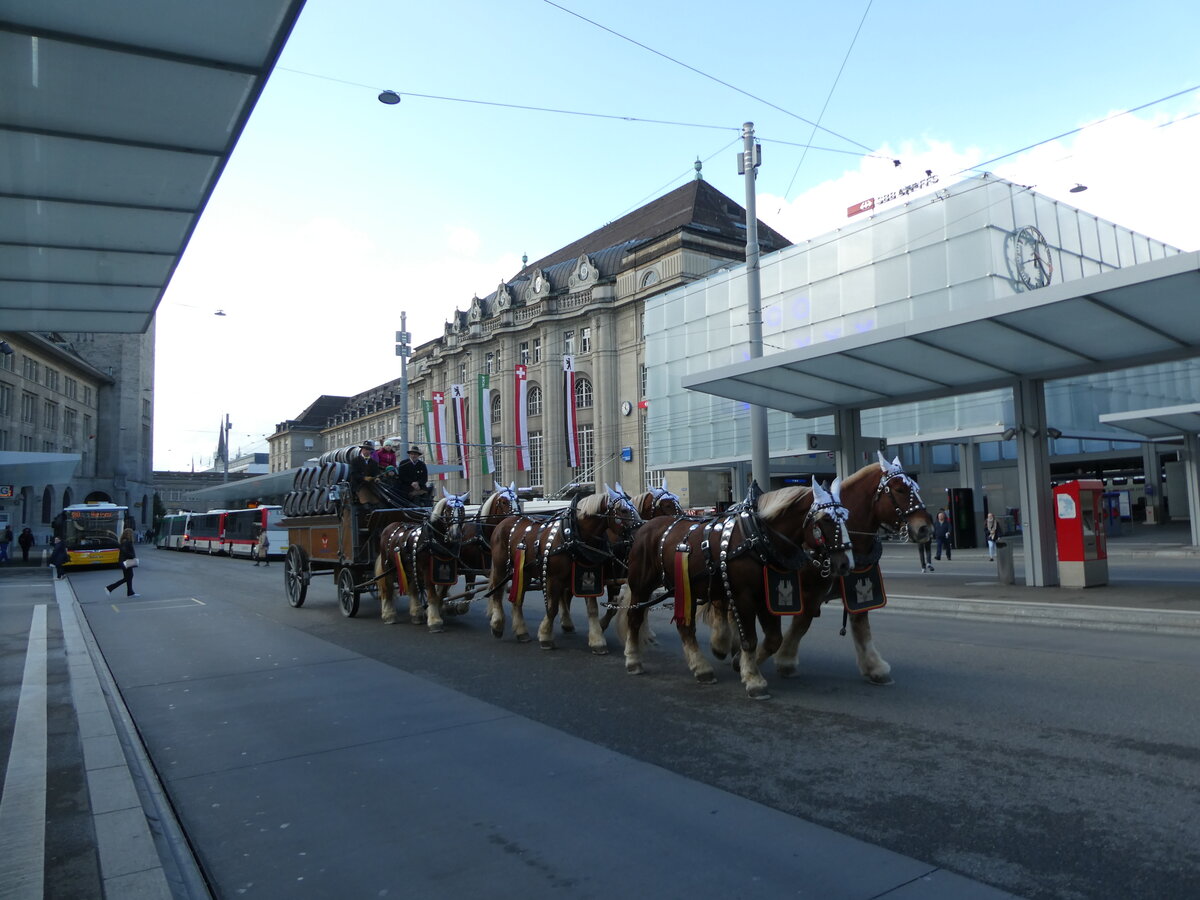(229'089) - 6-spänniges Bierfuhrwerk am 13. Oktober 2021 beim Bahnhof St. Gallen