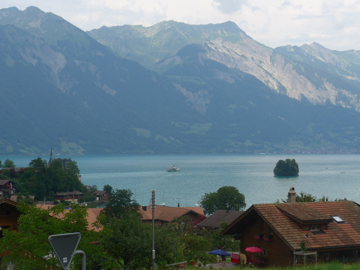 (219'290) - Iseltwald mit Dampfschiff Lötschberg und Schnäggeninseli am 1. August 2020