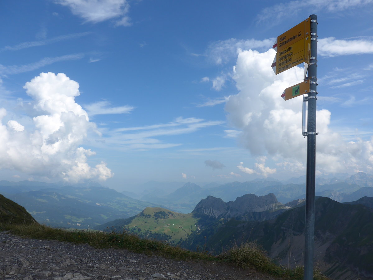 (209'140) - Wegweiser mit Blick auf den Sarnersee am 31. August 2019 vom Brienzer Rothorn aus