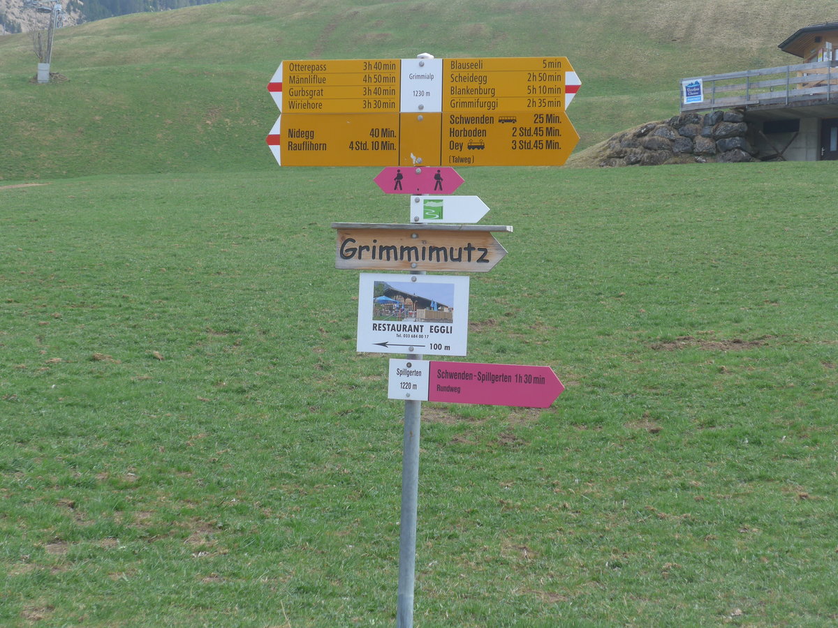 (216'187) - Wegweiser am 17. April 2020 auf der Grimmialp