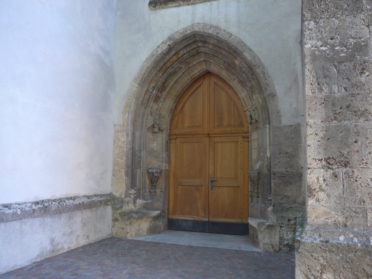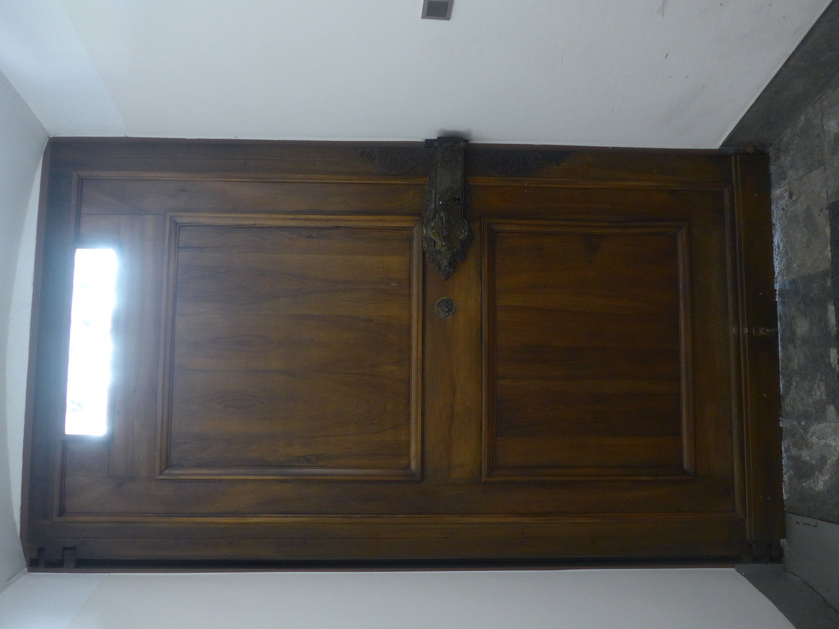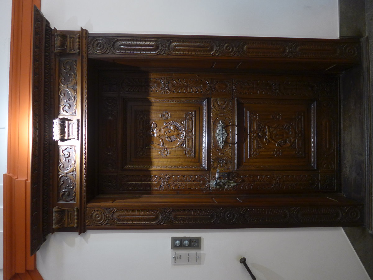 (241'203) - Geschnitztes Tor der Katholischen Kirche am 13. Oktober 2022 in Poschiavo
