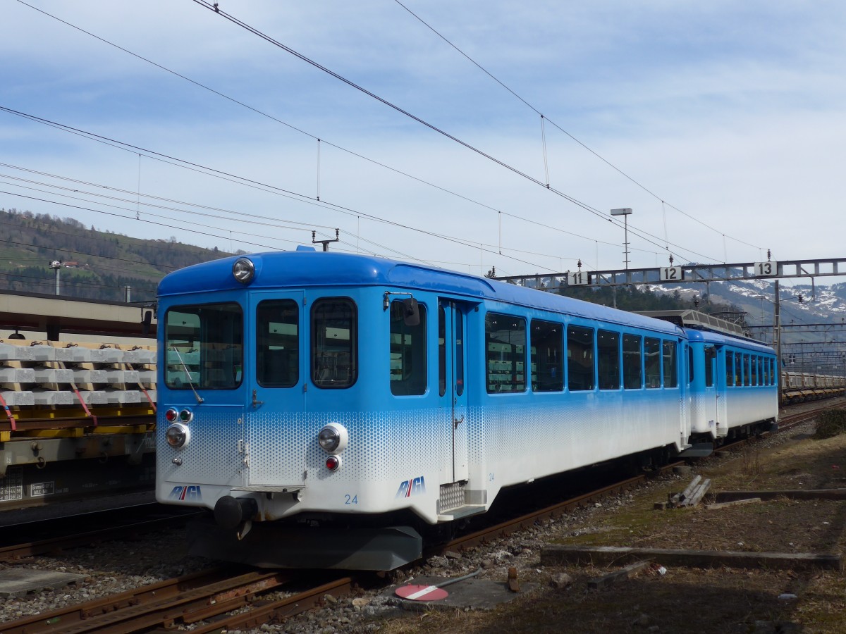 (159'265) - Rigi-Bahn-Triebwagen - Nr. 24 - am 17. März 2015 im Bahnhof Arth-Goldau