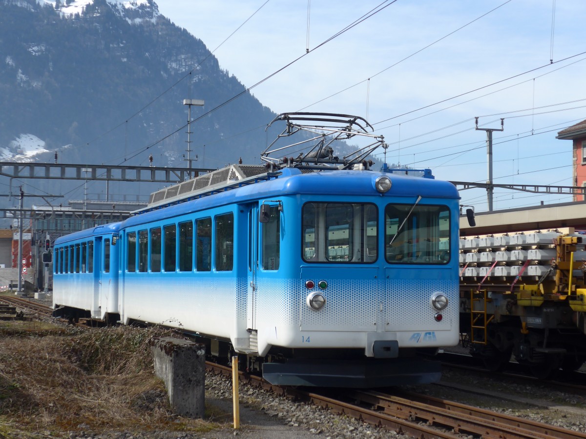 (159'267) - Rigi-Bahn-Triebwagen - Nr. 14 - am 17. März 2015 beim Bahnhof Arth-Goldau