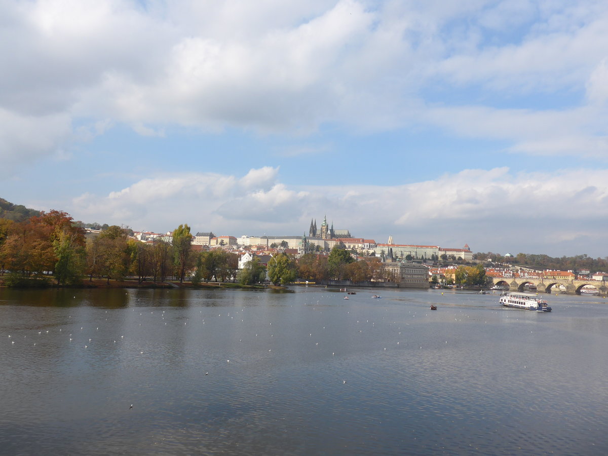 (198'881) - Die Moldau mit Pragerburg und Karlsbrücke am 20. Oktober 2018 in Praha