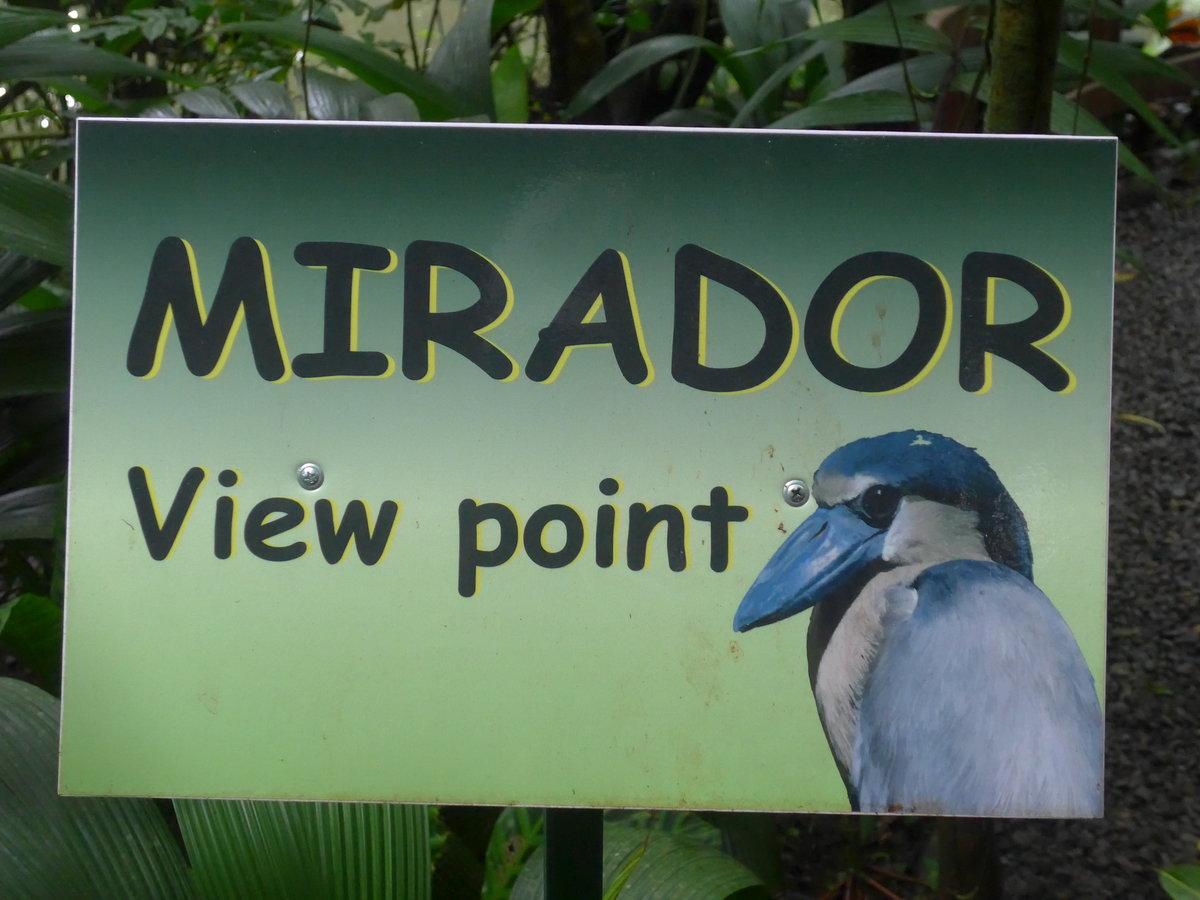 (211'526) - Hinweistafel zum Mirador Aussichtspunkt im Danaus am 17. November 2019 bei La fortuna