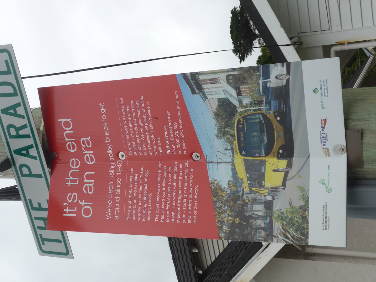(191'703) - Plakat zum Ende der Trolleybus-Aera am 27. April 2018 in Island Bay